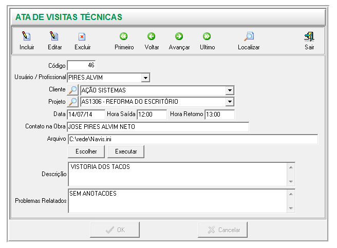 - É possível que o modelo de ata de visitas técnicas disponibilizado pelo Navis seja impresso e levado, por exemplo, para o local da obra/projeto. Na sequência, o lançamento das informações anotadas presencialmente pode ser feito no sistema (inclusive com mais riqueza de detalhes).