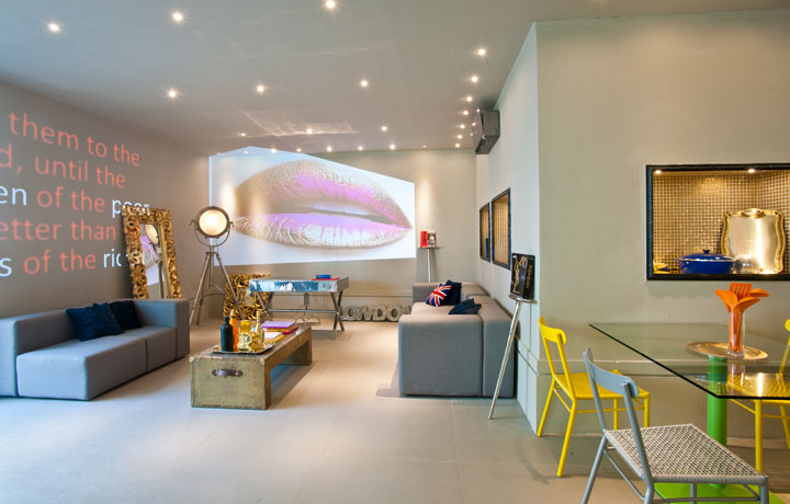 Em estilo totalmente retrô, o designer incrementa o espaço com o primeiro modelo de geladeira da Brastemp lançada nos anos 50, uma máquina de lavar roupas da mesma época e duas churrasqueiras a gás modulares adaptáveis a qualquer ambiente, comercial ou residencial.
