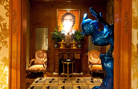 A biblioteca criada por Jorge Elias é um projeto totalmente autoral, que mistura o estilo clássico - na sua estrutura - com um toque de modernidade na escolha dos móveis e peças de arte, destaques do ambiente. Como numa grande galeria, a biblioteca (no mesmo lugar da original da casa) abriga peças que representam diversos movimentos artísticos desde o século XVIII até o XXI. Uma mesa de centro de Gilbert Poillerat (designer francês da década de 1940), mesas laterais francesas também dessa época, poltronas art déco, fotografias de JR Duran, Steven Meisel e Bruce Weber, gravuras de Picasso e desenhos de Marc Chagall e Fernando Botero são alguns exemplos que representam o conceito intimista do espaço.