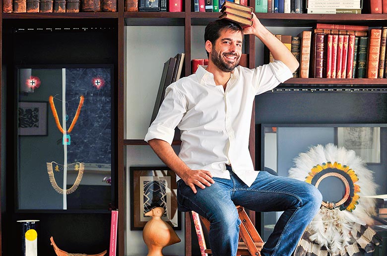 Atualmente, quando indagado qual a atividade professada, Thomaz Saavedra diz orgulhoso: “Sou um design enthusiast.” Esse jovem economista, amante do bom desenho, durante doze anos perambulou no mercado financeiro – do banco da família, o antigo Boavista, ao Icatu – antes de decidir não mais viver para o trabalho. Deu um passo que muitos adorariam dar mas não têm coragem, transformou em ganha-pão sua grande paixão: o hobby do colecionismo. O início do novo ciclo estreou com o cargo de representante em São Paulo do leiloeiro Sotheby’s de 2004 a 2007, seguido pela representação de outra grande casa internacional de leilões, a Bonhams. Em 2008, transferiu-se para a capital paulista ao inaugurar o Thomaz Saavedra Escritório de Arte em uma simpática casa no número 526 da Rua João Moura, em Pinheiros, que logo emplacou a wish list paulistana. O segundo passo, para espanto de alguns, foi a compra na Rua Augusta do apê onde escolheu morar. “Entrei na Rua Augusta a 120 por hora”, brinca. Situado na esquina da Lorena, no equivalente ao 4º andar, o apartamento de 100 metros quadrados, reformado para um quarto, dá para a Rua Haddock Lobo. Está resguardado do buchicho e ainda é abençoado por uma janela que assiste a um espetáculo raro para os paulistas e caro a um carioca como ele: o pôr do sol. Isso é que é sorte.
