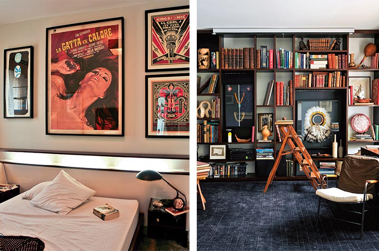 Ele não gosta mas, carioca que também sou, vou revelar um pouco do background do rapaz. Em São Paulo, poucos sabem que os Saavedra vêm de uma linhagem nobiliárquica portuguesa – o pai de nosso design enthusiast é o 5º barão de Saavedra. A família sempre prestigiou a cultura e esse legado é perpetuado por Thomaz no seu bom gosto e interesse principalmente pelo design vintage, por obras em papel e por edições raras de livros antigos. Nas paredes, entre os cartazes e cartazetes de sua coleção de artes gráficas, estão peças bem-humoradas como o pôster de divulgação do western americano, “The Pinto Kid” (1940), e “La Gatta in Calore” (1972), um filme erótico italiano, que se encontra três bien placé sobre a cabeceira de seu quarto. Na sala de jantar, dublê de biblioteca, estão as primeiras edições de algumas jóias da nossa literatura. Com capa na ortografia original encontra-se “Ideias de Géca Tatu” (1918), do grande Monteiro Lobato, que acabou preferindo criar para crianças: “De escrever para marmanjos já estou enjoado. Bichos sem graça”. Outra pérola é “Berço do Herói” (1965) de Dias Gomes. “É o livro que deu origem à novela ‘Roque Santeiro’. Tem prefácio de Paulo Francis, datado de novembro de 1964, e foi recolhido na ditadura, portanto, é uma edição rara”, diz Thomaz relembrando o período que manchou nosso Brasil, o que não impediu, vinte anos mais tarde, de assistirmos nas telinhas de nossos lares do Oiapoque ao Chuí aos divertidos “causos” do Cabo Roque, da viúva Porcina e do corrupto Sinhozinho Malta. Mundo vai, mundo vem, as coisas não são tão diferentes assim...